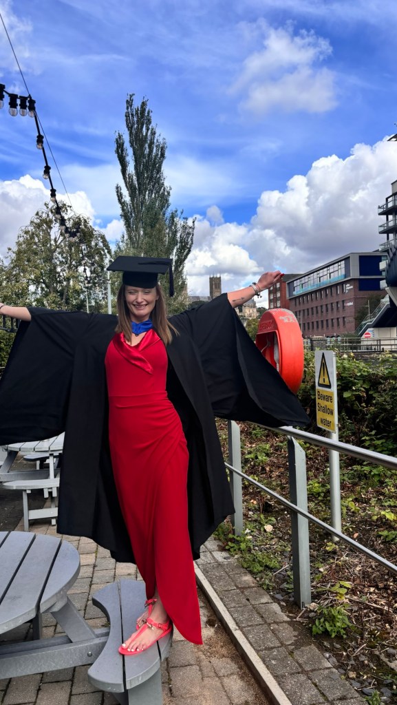 I graduated from The University of Lincoln in September 2024 in psychology. I received a 2:2, not that great, but hey, I did it with a newborn; I love a challenge, and it was an incredible journey filled with sleepless nights and papers to write – I was up anyway might as well have a purpose to it. Balancing the demands of motherhood with academia was no easy feat, but every late-night study session, tearful breakdowns and exhaustion was worth it when i walked across that stage. I am thankful I didn’t listen to those around me who suggested taking a year off; their intention was good, but I felt a strong determination to finish what I set out to do, I knew in my heart if I took the year out I never would have gone back. Now, with Luca on the move, I could not imagine getting any work done when he is home with me! He is curious and energetic, demanding all of my attention, whilst I am not made for being a full time mum, I cherish every moment with my boys, knowing that my dedication has set a strong foundation for our future.
